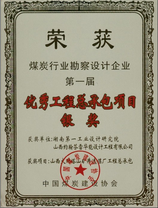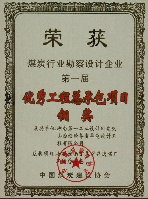 安徽淮南選煤廠(chǎng)總承包銅獎(jiǎng)
